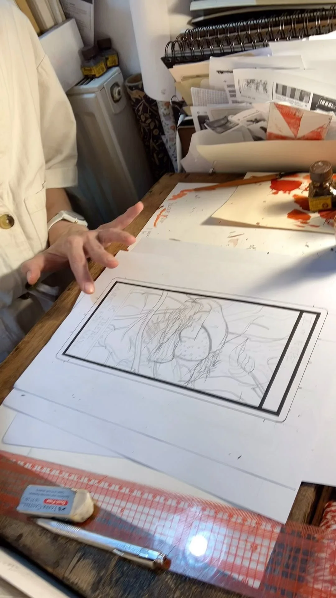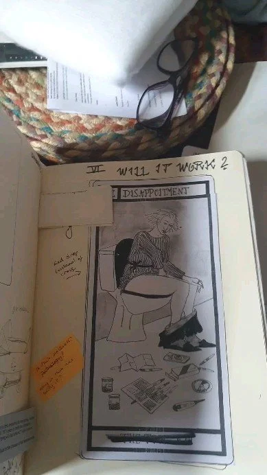 The Fertility Fortunes cards are styled like the tarot, with a ‘major arcana’ of archetypes and four ‘minor arcana’ suits: secrecy, fortune, uncertainty and hope. Some of the ideas within the tarot, such as the wheel of fortune (as in this page from Anna’s sketchbook of drafts) are used to pick up the themes within the experience of trying for parenthood.
