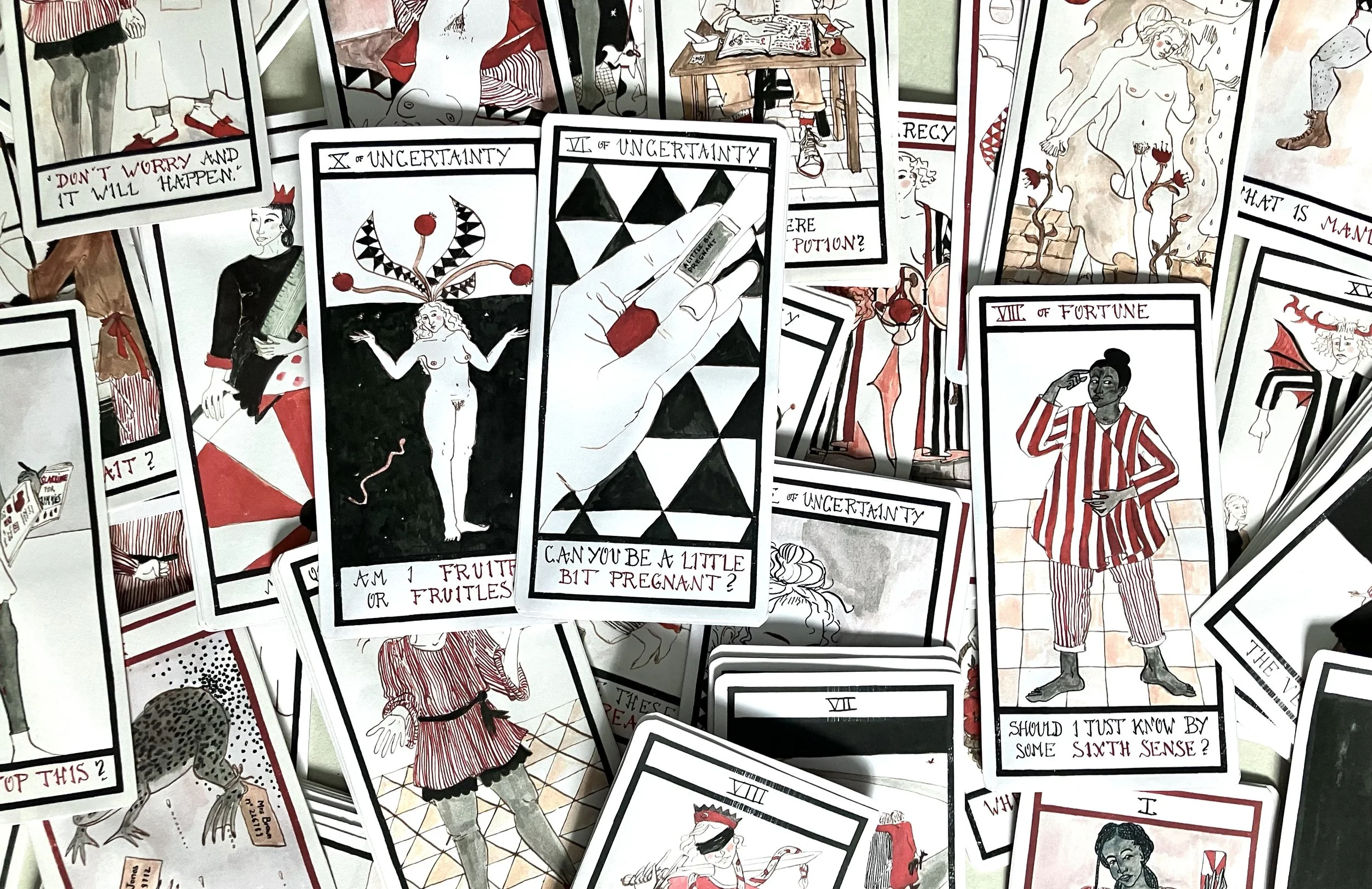 The Fertility Fortunes cards were made as part of an Arts and Humanities Research Council funded project, (Mis)Conceptions: A Cultural History of Pregnancy Ambiguity which ran from 2023-2025.